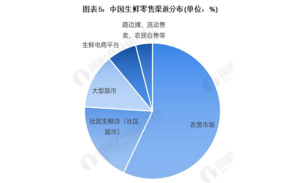 根据2022年1月全国城市农贸中心联合会发布的《2021年农贸市场发展情况调查报告》,从流通渠道占比来看,社区电商在内的线上平台与社区生鲜店正成为生鲜农产品流通渠道的有力补充。2020年,钱大妈、果多美等社区超市与社区生鲜店总交易额约占全国生鲜农产品零售总额的19%,大型超市约占13%,淘宝、京东等传统生鲜电商,多多买菜、美团优选、淘菜菜等社区电商,加上盒马、叮咚买菜、美团买菜等前置仓新零售渠道共占近7%,剩下约4%为流动摊贩、农民自售等销售渠道。