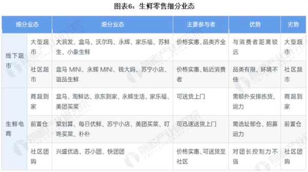 由于近年来超市行业正向着全渠道融合方向发展,生鲜超市的发展模式主要可以分为从线下到线上和从线上到线下。前者常见于拥有实体门店的传统超商,后者常见于向线下渠道拓展的电商平台。