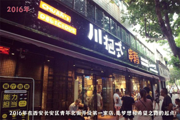 王儒先生将手艺带回西安后,2016年在长安区开了第一家川把式串串香,由于口味独特吸引来了大批顾客,每天都要排队三小时才能吃上川把式,于是很多顾客自己也想开一家这样火爆的串串店,都是王儒先生亲自跑市场选址,亲自培训前厅后厨等100余家的川把式串串香门店络绎不绝的开了起来,加盟商太多迫不得已成立了西安蜀参谋餐饮管理有限公司。更好的服务于每一位加盟商!从此点亮了每一位创业者前进的灯塔。