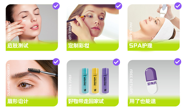 ③还可每月免费尊享门店SPA护理、全套彩妆、皮肤测试、修眉、任试瓶等丰富会员服务。