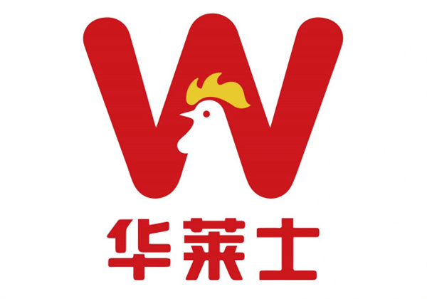 华莱士连锁的品牌LOGO以「华莱士连锁」英文名称「Wallace」首字母「W」为主要识别符号,并在「W」中间增加了一只黄鸡冠公鸡形象,主色调为红色和黄色。