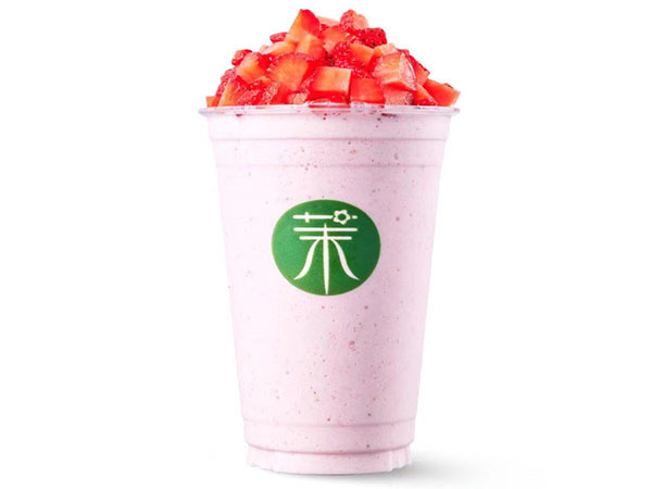 草莓酸奶奶昔:顶部点缀满满的草莓果粒,每一口酸甜都恰到好处。