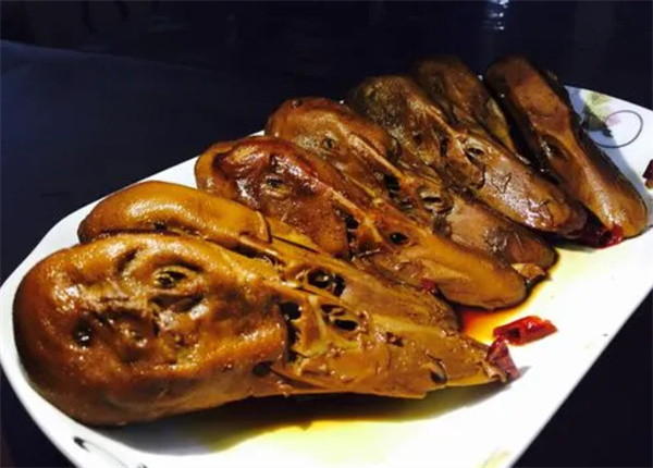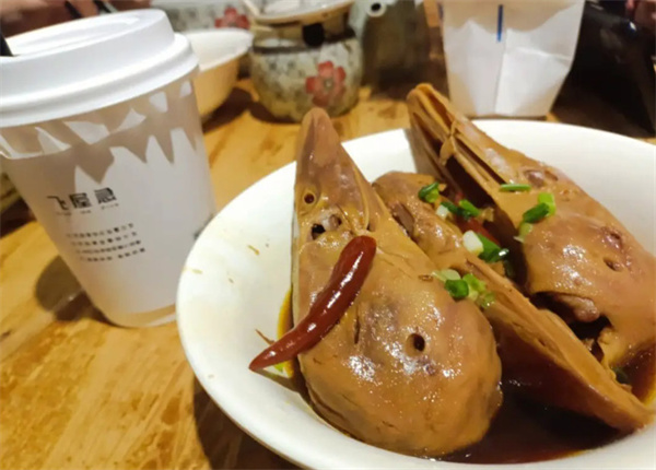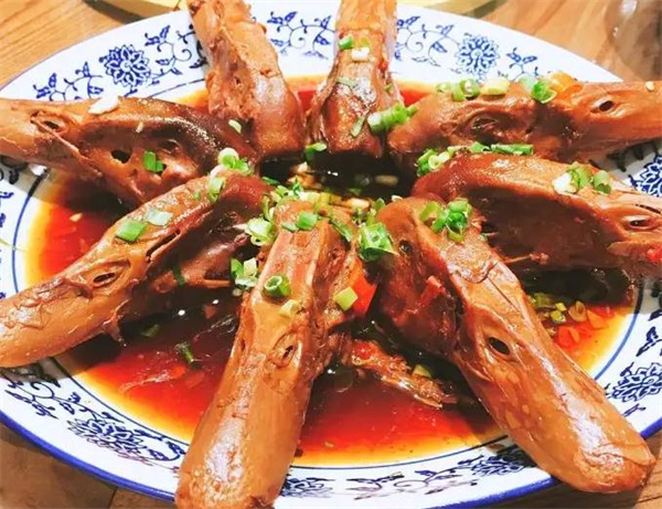 鸭头的烧法各家都各有绝活,但大抵不离辣椒、姜、蒜、桂皮、杞子、中药等辅料,这样烧制的鸭头味道鲜美、色香俱全。在衢城当地的餐馆,鸭头几乎是每家的主打招牌,特别是夜市大排档,要是哪一家大排档没有鸭头,估计都开不下去。衢州三头(兔头、鸭头、鱼头)是衢州地方特色风味食品,鸭头是三头之一,除了兔头、鸭头、鱼头外,还有鸭掌。