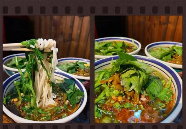 核心特征:傣味儿米线以清爽无油、香料独特著称,常用香茅草、柠檬叶等配料,搭配冰凉蘸水形成「柠檬撒」特色吃法。