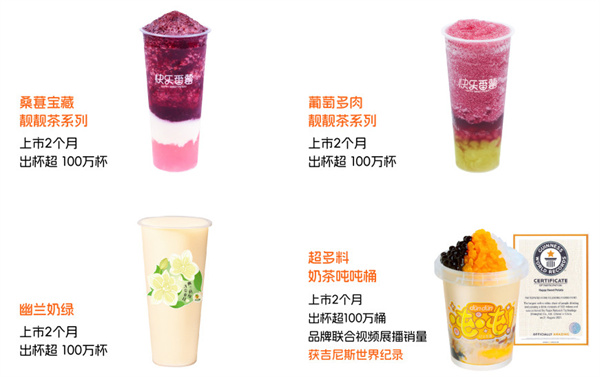 新品系列:幽兰奶绿、首创超长杯系列、宝藏靓靓茶系列等。