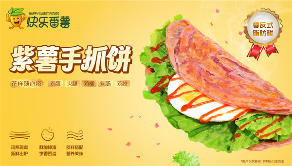 特色小食:紫薯手抓饼、烤番薯、番薯烤肠、芝士焗番薯等。