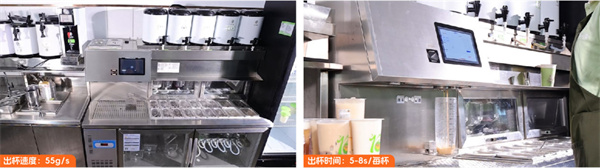 老红糖薯圆奶茶店标配了公司自主研发生产的智能奶茶机,5-8 秒完成出杯,大大提升了出杯效率和出杯标准,也同时降低了门店的人力成本。
