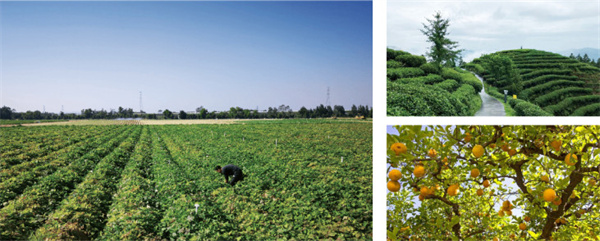 绿色的叶子代表绿色食品,即番薯叶和茶叶。