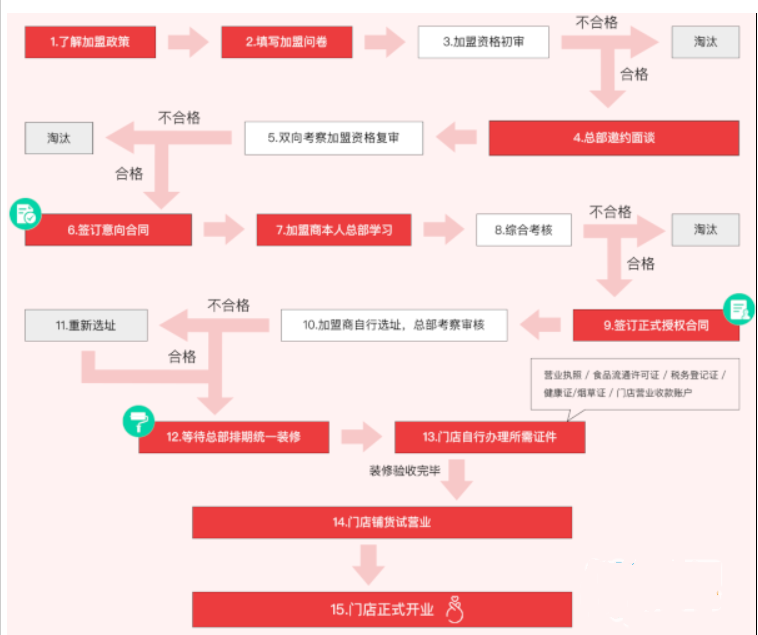 要求加盟商本人亲自到总部参与培训学习,并按照要求考核达标,否则总部有权取消合作协议;