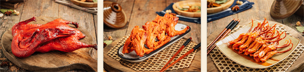 产品介绍:采用天然放养的麻鸭为原料,经滚揉腌制、烘烤、酱制等十多道工序制作而成。在酱鸭风味设计中,采用植物香辛料和咸味香料巧妙组合搭配,确定了煌家酱鸭的基础风味,香气(味)感层次分明,鸭肉纤维韧性强,肉质咸鲜适口,富有嚼劲,骨头酥松,啃之味浓。
