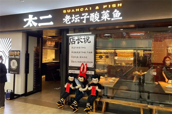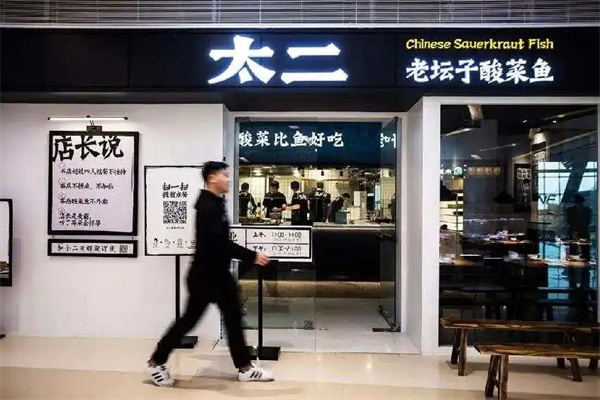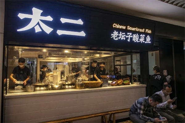 太二主打一道老坛子酸菜鱼,立志把三千年历史的酸菜变成中国潮流文化的符号。门店现已辐射中国大部分城市,主要集中于北上广深等一线城市