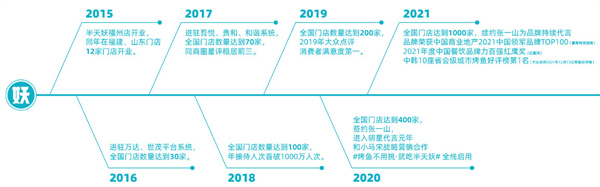 通过独有的品牌连锁商业模式运作,迅速成为中国餐饮业烤鱼品类的一匹高品质黑马,半天妖以精益求精的烤鱼技艺,严格甄选的新鲜食材 更加具有性价比的消费体验,将特色体验式的餐饮文化发挥到了极致