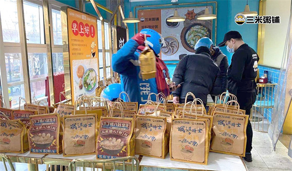 2月 三米粥铺参与美团“医护紧急专供餐”特别行动,为奋战在一线的医务工作者送餐
