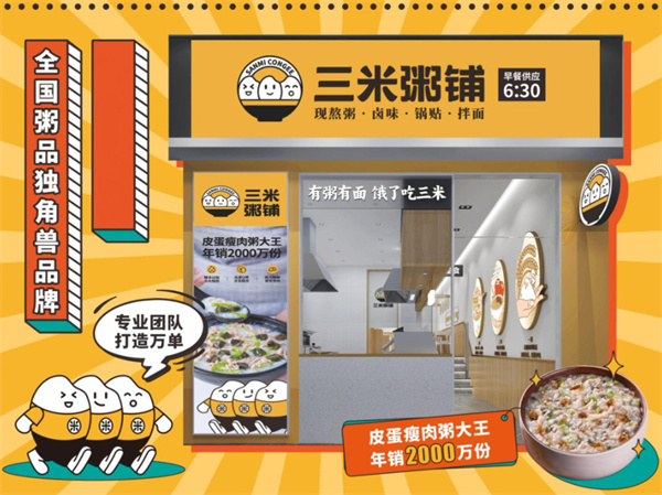 三米粥铺将粥的温度传递到千家万户,将更丰富的餐桌体验传递给我们的顾客,同时为加盟商带来更健全完善的服务,为有志于餐饮行业的创业者创造千载难逄的商机。