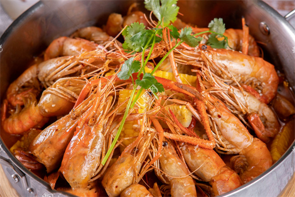 王婆大虾的特色在于其秘制锅底,主要选用南美白对虾,并配以黄皮红薯、有机甜糯玉米等食材,再加上秘制中草药调料,形成了独特的风味。这种做法使得菜品不仅味道香辣鲜美,而且不燥不火、不油不腻,适合各个年龄段的消费者。
