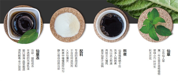 长大后,没有了老婆婆,也没有了那滑溜溜的黑白仙草。记忆中的味道,如同到不了的远方,再也找不到。直到有一天机缘巧合之下,结 实了一位深谙台湾仙草秘方的金门人,他将制作秘诀传授于我,终于找到了那一去不返的夏日时光。
