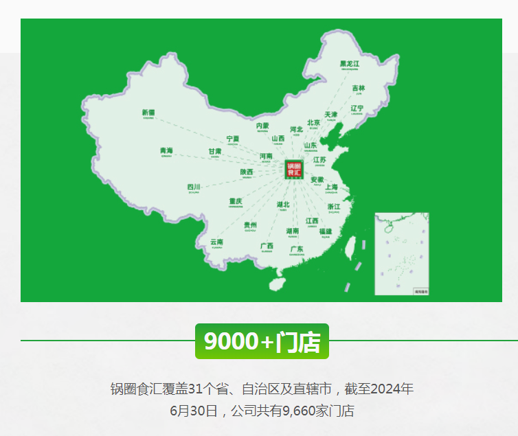 全国 9000门店 覆盖 24个省3个直辖市,200个地市,锅圈食汇正在迅速增长